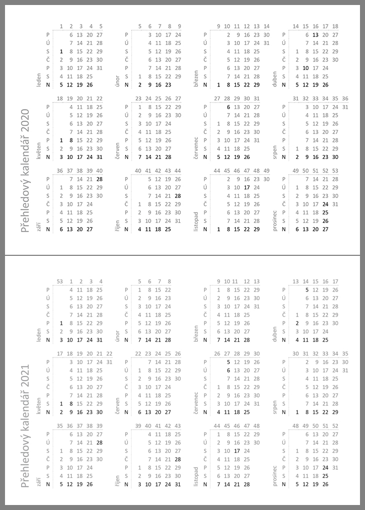 | číslo týdne | ✓ | ✓ | ✓ | ✓ | ✓ | ✓ | ✓ | ✓ |