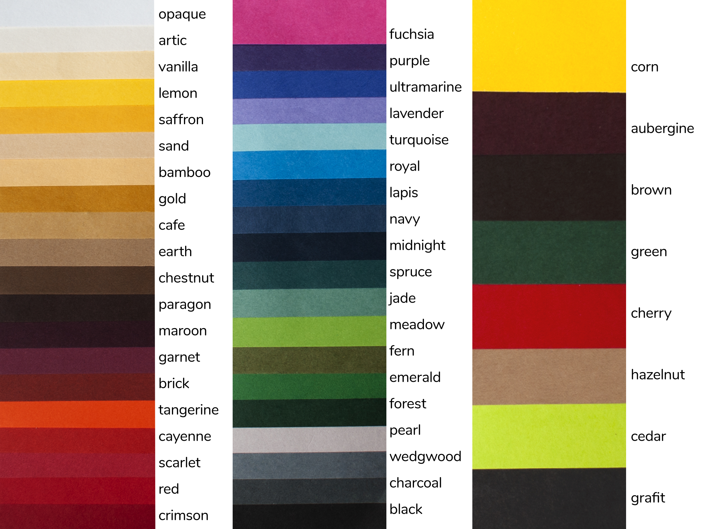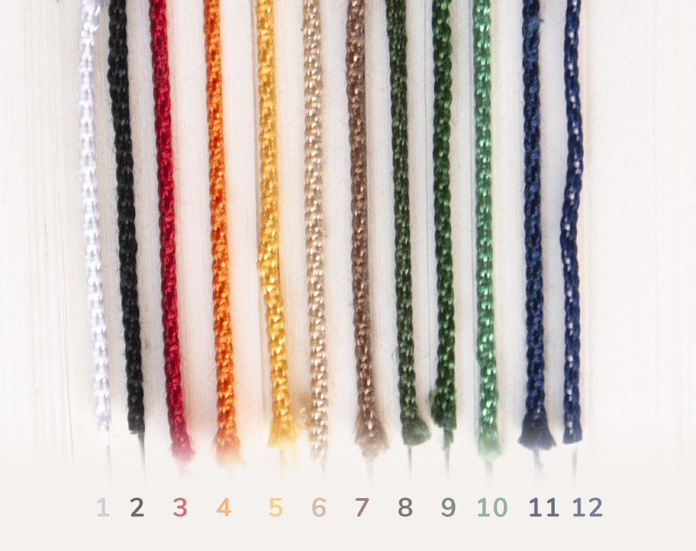 Dostupné barvy šitých kapitálků: černá (1), tmavě šedá (2), světle šedá (3), bílá (4), krémová (5), světle žlutá (6), žlutá (7), teplá žlutá (8), žlutooranžová (9), oranžová (10), tmavá oranžová (11), lososová (12), červená (13), vínová (14), tmavá vínová (15), sytá růžová (16), růžová (17), světlounká růžová (18), světle fialová (19), lila (20), fialová (21), modrofialová (22), tmavě modrá (23), královská modrá (24), tlumená modrá (25), středně modrá (26), světle modrá (27), tyrkysová (28), světlá mentolová (29), mentolová (30), zelenožlutá (31), studená zelená (32), světle zelená (33), zelená (34), zelená (35), tmavá zelená (36), hnědá (37), teplá hnědá (38), písková (39), zlatavá (40), béžová (41), světlounce hnědá (42)