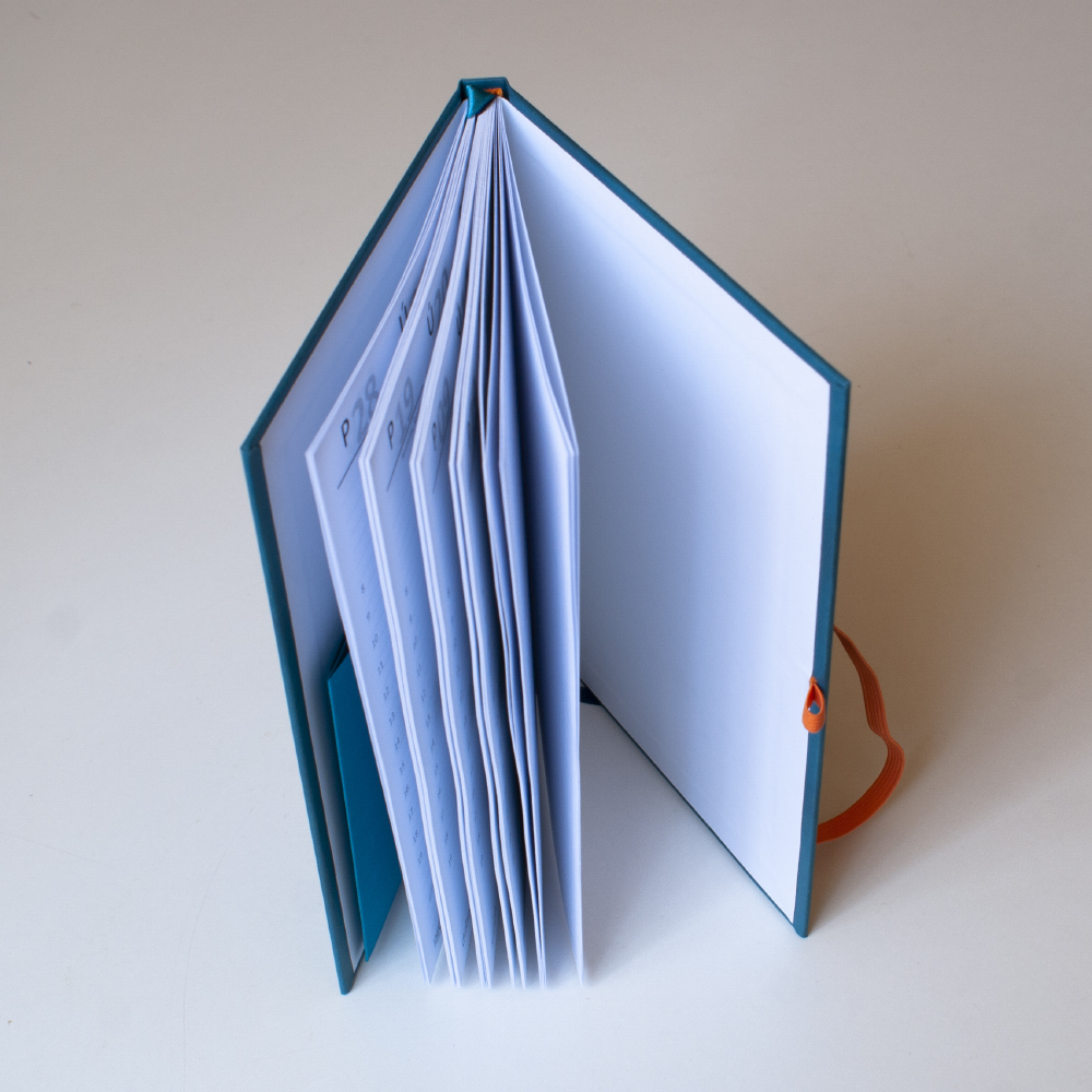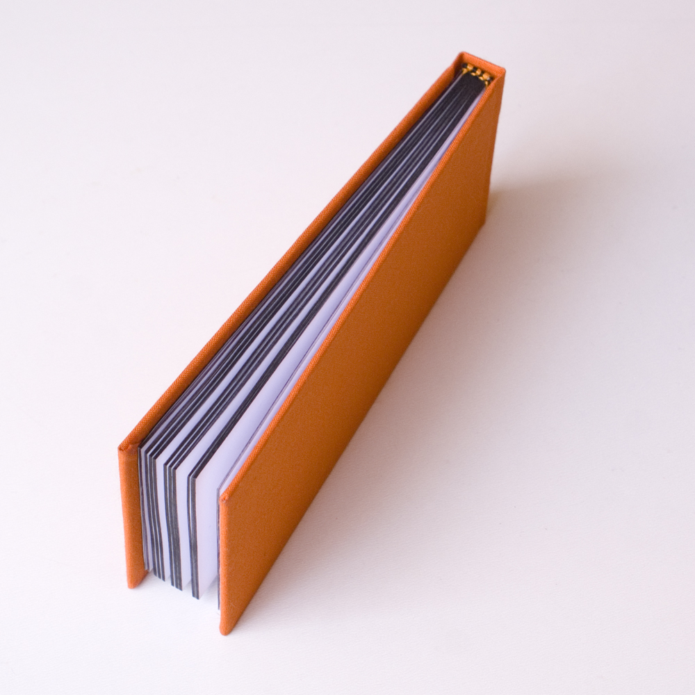 V čem jsou tedy mé šité diáře jiné? Díky svému polygrafickému vzdělání a osobnímu zájmu o knihařství vím, jak se tradičním postupem vyrábí knížky. Není to postup zastaralý, ale je osvědčený. V průběhu vývoje se některé věci hodně změnily (konkrétně různorodé materiály jednotlivých částí knih nebo třeba lepidla), přednosti přetrvávají. Největší přednostní takto individuálně vyrobého diáře je, že jako jediný kus musí být vyroben maximálně ručně (seřídit stroje na jeden kus je prakticky nemožné a zcela neekonomické). Pro vás to znamená, že váš diář je celý vyroben ručně s asistencí technologie a nikoli naopak - ručně skládám archy na složky, ručně šiji skutečně jehlou a nití, ručně lepím, kašíruji desky a tak dál. Takový výrobek svou cenou samozřejmě nemůže konkurovat paletám průmyslově vyrobených diářů, ale oproti těmto průmyslovým může nabídnout maximální možnost úprav přesně podle přání budoucího majitele nebo uživatele. Diář by měl obsahovat pouze to, co skutečně potřebujete a nic navíc - proč s sebou tahat "mrtvou váhu" listů a doplňků, které buď nevyhovují nebo vysloveně překáží? Navíc, knížka, blok nebo diář skutečně šitý nití má tu obrovskou výhodu, že krásně drží otevřený a samovolně se nezavírá.